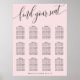Welcome your guests with this elegant blush pink wedding seating chart. Featuring a minimalist design with modern script that says find your seat, this seating chart is perfect for a sophisticated and stylish wedding. The soft colour and clean layout provide a refined and organised look, ensuring your guests can easily find their seats. Customise with your names and table arrangements to create a unique and cohesive addition to your wedding decor. This seating chart accommodates up to 12 tables, making it ideal for a well-planned and elegant celebration.