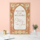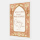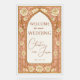 Make a grand entrance with this luxurious wedding welcome sign featuring a rich gold background and stained glass details. Embellished with soft cream roses, this design blends timeless elegance with artistic flair. Personalize with your names and date for a sophisticated touch to your ceremony or reception.