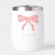 Cute coquette aesthetic striped bow thermal wine tumbler. Add your own name and address to the back. Featuring hand illustrated tied bows with rose pink and cream stripes. Set on soft cream background. Matching items available. Original art from artists own illustrations. Please use the message me button below for help with further customisation and special requests. © Zoe Chapman Design