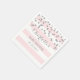 Customisable napkins for baby shower in light pink and white stripes pattern with silver confetti, please note silver is photographic effect only.