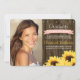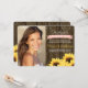 Add your favourite senior class picture to these sunflower graduation photo announcements and invitations with a country vintage charm. Painterly golden yellow sunflowers border this new grad invite with a brown wooden fence background with nail head trim that reminds one of old barns, a farmhouse or barrel. Add the year of your graduating class onto the BLUSH PINK ribbon banner look design. Graduation ceremony and celebratory party details can be added to the back of this invitation. Design © Chrissy H. Studios, LLC. All rights reserved.