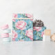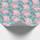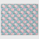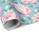 Blush Pink Trailing Peony floral Wrapping Paper with sky blue background.