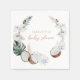 This baby shower napkin features pink pampas, tropical palm leaves and a fun handwritten script font. This baby shower paper napkin is perfect for your beach or tropical themed baby shower event.