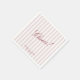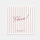 Modern wedding napkins featuring blush pink and white vertical stripes with elegant red script reading “Cheers!”. Perfect for cocktail hour, dinner service, or the bar, these stylish napkins add a chic and personalised touch to your wedding celebration. A simple yet elegant design that complements a modern striped aesthetic.