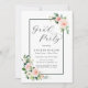 This graduation party invitation features painted watercolor flowers in blush pink, white, and green foliage with a rectangular frame. For more advanced customisation of this design, Please click the "Customise" button.