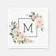 This monogram paper napkin features painted watercolor flowers in blush pink, white, and green foliage with a square frame. For more advanced customisation of this design, Please click the "Customise" button. Matching items are also available.