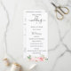 Elegant blush pink watercolor flowers and delicate green foliage, wedding program. Program features cute calligraphy "wedding" accent with multiple lines for custom text lists for ceremony order of events, wedding party and thank you note.