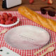 A chic blush pink watercolor wash wedding paper plate featuring elegant pastel gradient designs and clean calligraphy script for spring and summer weddings.