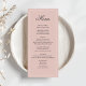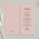 Enhance your wedding reception with this wedding menu card, featuring simple elegant calligraphy in a classic formal style. Designed in a stylish blush pink hue, this reception dinner template adds a soft, romantic touch to your rehearsal party table. The traditional typography design showcases the bride and groom’s monogram with classy ampersand initials, creating a refined and personalised detail. With a clean, basic, minimal aesthetic, this menu is the perfect complement to your elegant celebration