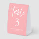 This blush pink wedding table number paper table tent brings a soft, romantic touch to your reception décor. Its gentle pastel tone creates an elegant and welcoming atmosphere that complements a wide range of wedding themes. The clean, modern typography keeps table numbers easy to read for guests while maintaining a refined aesthetic. Sturdy, high-quality paper ensures the tent stands beautifully throughout the celebration. The minimalist design allows the blush color to shine without overwhelming the table setting. It’s a graceful and stylish detail that adds charm and cohesion to your wedding décor.