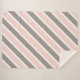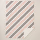 Modern sherpa blanket for girls bedroom features diagonal striped pattern in blush pink, grey, and white.