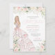 Elegant luxury design featuring soft blush pink and white roses, rose gold accents, and a beautiful doll in a luxurious glamourous flowy ball gown. All text is fully customisable.