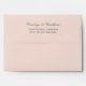 Custom A7 wedding invitation mailing envelopes feature a charcoal grey return address text that can be personalised on the back flap of the envelope and stylish silver faux foil background that is printed on the inside. Blush pink (can be customised) background colour.