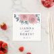 Designed to coordinate with our Blush Poppies wedding invitation and accessory collection, these personalised modern floral wedding napkins in a chic colour palette of blush and navy are perfect for your cocktail hour or wedding reception. Design features a grouping of watercolor poppy flowers in blush pink, surrounded by leaves and buds in dusty navy blue and faded hunter green. Add your names and wedding date in modern midnight blue lettering embellished with decorative swashes.