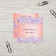 A trendy blush faux metallic looking background. Decorated with purple, violet faux glitter, sparkles. Personalize and add your name, title, profile photo, phone number, mail, website adsress, qr code to your website. Purple letters.