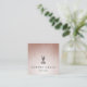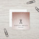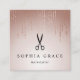 Elegant and simple design for hairstylists in a unique square format features classic black lettering on a blush pink ombre background adorned with strands of faux rose gold foil string lights. Personalise the front with your name and business name or occupation beneath a pair of stylist scissors, and add your full contact information, including hours if applicable, to the reverse side. A beautiful choice for any occupation; example shown for aestheticians.