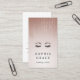 Elegant vertical business card design features classic black lettering on a blush pink ombre background adorned with strands of faux rose gold foil string lights. Personalise with two lines of custom text on the front a pair of lush eyelashes and eyebrows, and add your full contact information to the reverse side. A chic choice for makeup artists, lash specialists, brow techs, aestheticians and beauty industry professionals.