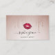 Chic modern makeup artist business card features a blush pink ombre background adorned with strands of faux rose gold foil string lights. Add two lines of custom text to the front, with your name or business name in chic handwritten script beneath a vibrant pink lip print kiss, and customise the back with your full contact details.