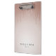 Chic personalised clipboard features two lines of custom text in classic black lettering, on a blush pink ombre background adorned with strands of faux rose gold foil string lights. Design repeats on reverse side.