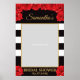 This is beautiful bridal shower photo prop features deep red blooming roses and black stripes combined fancy celligraphy lettering