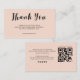 The front features a bold handwritten script "Thank You" with your full appreciation message and website URL — warm, personal, and professional. The back delivers a dedicated review request with a large scannable QR code — simply scan to leave a review — along with a five-star prompt and your full business information.