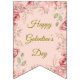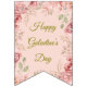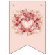 Blush Rococo Garden Galentine Floral Banner Flags presents a soft, romantic visual composition inspired by French rococo garden gatherings and vintage fête décor. The palette blends blush pink, pale rose, warm champagne, and muted sage green, creating an airy, feminine atmosphere that feels light, celebratory, and timeless. Each flag showcases delicate floral motifs, subtle botanical flourishes, and gentle ornamental detailing arranged in a harmonious rhythm across the full garland.