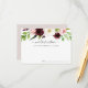 Chic floral advice cards let bridal shower guests share their favourite words of wisdom for the bride to be. Cards feature a top border of blush pink, ivory and burgundy watercolor flowers with lush green botanical foliage. "Words of wisdom for the future Mrs. [Name]" appears in modern hand lettered calligraphy script. Designed to coordinate with our Blush Romance event stationery collection.