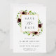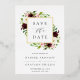 Our Blush Romance wedding save the date frames the words "save the date" with an elegant border of burgundy marsala, blush pink and ivory flowers with lush green foliage with gold foil accents. Personalise with your names, wedding date, and location beneath, and add additional details to the back.