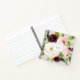 Chic custom notebook bears your name or business name in the centre, overlaid on an oversized watercolor floral illustration in blush pink, ivory, burgundy marsala and green.