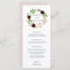 Chic floral wedding menu features your starter courses, entrees and desserts in elegant lettering, with your names and wedding date encircled by a watercolor wreath of flowers and foliage in blush pink, burgundy marsala, ivory and spring green. Coordinates with our Blush Romance wedding collection.