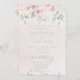 Blush pink rose wedding invitation featuring a watercolor painted soft pink floral and silver eucalyptus greenery against a blush watercolor wash background.