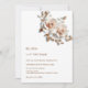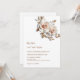 This informal wedding invitation with first names only features three dimensional blush flowers and rose gold leaves with shadows.