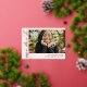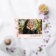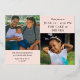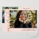 Elegant horizontal rose gold graduation invitation in blush pink personalised with one photo on the cover and two more photos on the back. Double sided graduation invitation printed with rose gold foil against a pale pink background. 2 in 1 graduation announcement and invitation personalised with photos and the graduate's name in rose gold foil.