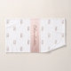 An elegant white background, with a rose gold coloured ribbon. Personalise and add your monogram letters, initials and name. Dark rose gold coloured letters. The name is written with a modern hand lettered style script. The monogram as a background pattern.