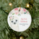 Watercolor Floral Blush Rose Snow Seal Baby 1st First Christmas Ceramic Ornament.