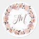 Blush Roses Floral Wreath Monogram Wedding Classic Round Sticker