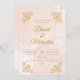 An exquisite wedding invitation with a soft blush watercolor background and ornate golden embellishments, capturing timeless elegance and romance in every detail.
