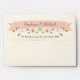 Add your names and address to this pretty custom rustic floral boho style envelope with a cream off white coloured background and printed blush peachy pink ribbon look banner with a white cherry blossom branch, sunflower, brown eyed susan and aqua teal blue wild rose tulip and posy laurel wreath design. These envelopes perfectly compliment a bohemian chic, country western, farm, farmhouse, barn, barnyard or outdoor garden themed special occasion like a wedding, bridal or couples shower, engagement party, rehearsal dinner or anniversary celebration. Artwork and design © Chrissy H. Studios, LLC. All rights reserved.