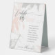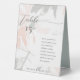 Guide your guests to the right table at your wedding, dinner party, or other special occasion with these high quality table tents! These modern 6" x 8" wedding table tent and guest names cards feature the greeting, "Table" in large letters on an organic abstract floral design in soft blush and sage. Add your own table numbers and guest names. The names can be removed or modified to different number of guests, if desired. Printed on front and back. Available in 4 sizes - Made of white plastic polystyrene.