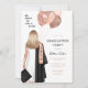 Blush pink She believed she could, so she did graduation invitation. Features blonde woman portrait graduate with blush pink glitter balloons, graduation cap and gown for the Class of 2024. Perfect grad party invite for high school grads, university grads, and graduate school grads.