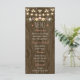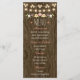 This wedding menu card is part of a fall floral rustic string of lights wedding invitation set in blush, coral, green, brown, white, yellow and brown hues with a beautiful wood look background reminiscent of a wooden fence and or barrel. An autumnal laurel wreath composed of acorns, berries, sunflowers, tulip rose and white blossoms sit on a leafy branch. The back of the card can be personalised with the initials of the bride and groom inside the carved tree look heart design. The word menu is flanked by two sweet hearts. Perfect for an outdoor fall, night time, country, farmhouse, barnyard or rural chic themed wedding, anniversary party, engagement dinner or bridal and couples shower. The charming twinkle and fairy lights with a bokeh effect look bright, sweet, warm and inviting. Artwork © Chrissy H. Studios, LLC. All rights reserved.