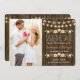 Add your favourite engagement photo or picture to this rustic string of lights save the date card that is part of a fall floral rustic string of lights wedding invitation set in blush, coral, green, brown, white, yellow and brown hues with a beautiful wood look background reminiscent of a wooden fence and or barrel. An autumnal laurel wreath composed of acorns, berries, sunflowers, tulip rose and white blossoms sit on a leafy branch. The words Save the Date is flanked by two coral hearts. Perfect accompaniment for an outdoor fall, country, farmhouse, barnyard or rural chic themed wedding, bridal shower, anniversary party or couples shower. The back can be customised with the happy couple's proposal story or special message for their guests. The charming twinkle and fairy lights with a bokeh effect look bright, warm and inviting. Artwork © Chrissy H. Studios, LLC. All rights reserved.