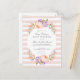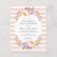 Whether you can't gather for a party due to Covid 19 social distancing guidelines, or long distance family and friends are just too far away, this beautiful Baby Shower by Mail invitation will allow loved ones to celebrate your new baby from anywhere. This pretty botanical design features a watercolor frame of peach and lavender flowers on a blush striped background. Use the design tools to customise the text, edit the fonts and colours or add your own photos to create an elegant spring floral baby shower invitation.