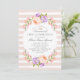 Affordable custom printed Sacrament of First Holy Communion invitations personalised with your event details. This pretty botanical design features a watercolor frame of peach and lavender flowers on a blush striped background. Use the design tools to customise the text, edit the fonts and colours or add your own photos to create an elegant spring floral Communion invitation.