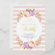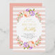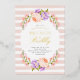 Affordable custom printed Mother's Day brunch and bubbly invitations personalised with your event details. This pretty botanical design features a watercolor frame of peach and lavender flowers on a blush striped background. Use the design tools to customise the text, edit the fonts and colours or add your own photos to create an elegant spring floral brunch party invitation.