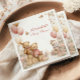 A sweet teddy bear baby shower design featuring soft blush flowers, pastel balloons, butterflies, and vintage toy blocks. The gentle colours and woodland-inspired details create a charming and timeless theme, perfect for celebrating the mum-to-be.