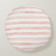 Blush Watercolor Stripes Gold Glitter Hearts Round Cushion