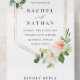 Blush White Bloom Hexagon Gold Frame Wedding All In One Invitation