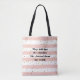 This chic tote bag has a blush pink and white watercolor striped background with a smattering of simulated gold confetti overtop. There is also customisable wording that says: "They told her she couldn't. She showed them she could." If you require any assistance, please email niteowlstudio@gmail.com.