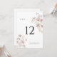 This blush wildflower wedding table number features soft floral artwork, elegant serif typography, and a romantic neutral design. The airy layout and balanced floral placement create a refined, timeless look that complements boho, garden, vineyard, and outdoor weddings beautifully.